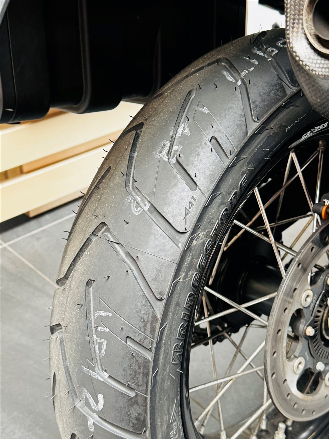 - frischer Hinterradreifen
